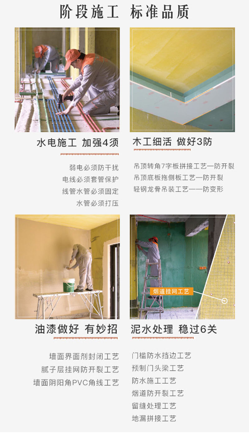家家空氣檢測,戶戶達標(biāo),不達標(biāo)免費治理,治理達到國家標(biāo)準(zhǔn)為止階段施工 標(biāo)準(zhǔn)品質(zhì)