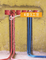 6大獨創(chuàng)工藝 極致細(xì)節(jié)追求華美樂線管4變3工藝是基于承重墻條件下布管考慮,使用管徑相對較小的3分線管,通過4變3接頭連接,有效解決線管埋置深度不足的問題。更好的解決電線抽不動、散熱效果差的隱患。