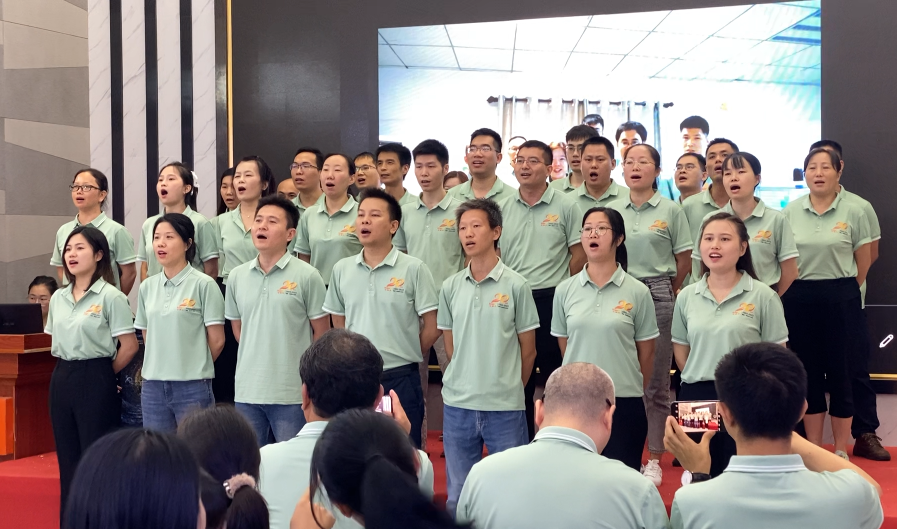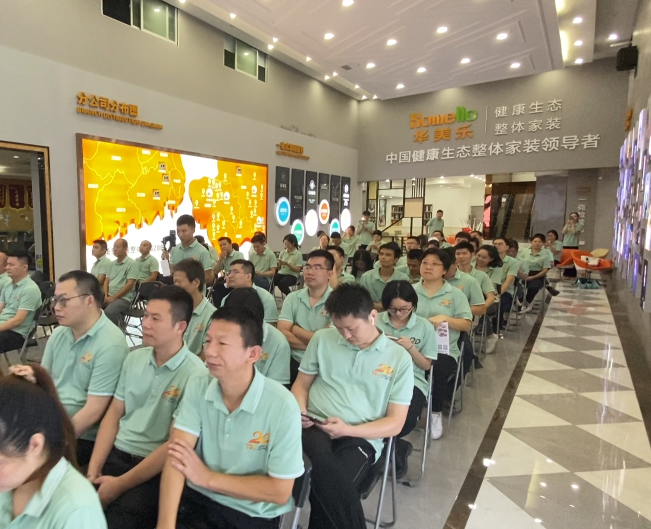 早點(diǎn)8點(diǎn)50分,總部職能部門、銷售公司和定制運(yùn)營(yíng)部全體成員歡聚一堂,一起迎接生日會(huì)。聚會(huì)上,公司播放了十年以上員工的照片視頻,場(chǎng)上每一位華美樂人都聚精會(huì)神,嘴角不時(shí)上揚(yáng),一下子回想起了這些年來的心路歷程。