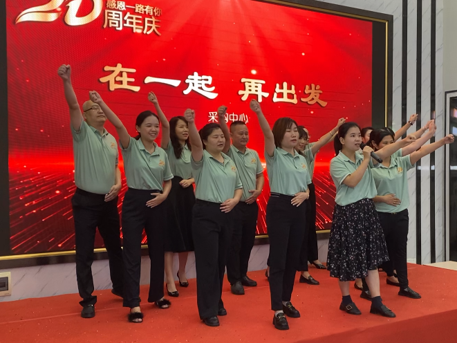 采購(gòu)中心成員的節(jié)目《在一起,再出發(fā)》,以詩(shī)朗誦的形式為華美樂慶生。一句“我緊隨您的腳步,一路風(fēng)雨無阻。”訴說了員工與公司多年來同舟共濟(jì)的歷程與自身努力的認(rèn)可。面對(duì)未來,“戰(zhàn)勝自我,開拓創(chuàng)新,重新出發(fā)!”