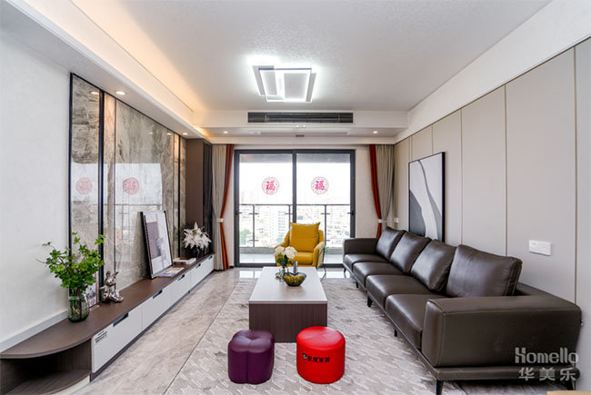 客廳通鋪大理石地板,地板上再鋪設(shè)上一大塊毛織地毯,色調(diào)上與地板很有貼合感,既增加了居住的舒適度,也保持了高顏值。