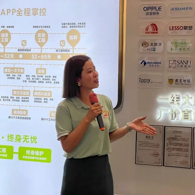 活動中,華美樂裝飾肇慶分公司總經(jīng)理周亞麗介紹了當前行業(yè)狀況、整裝技術和發(fā)展目標,就行業(yè)發(fā)展分享了前景趨勢。