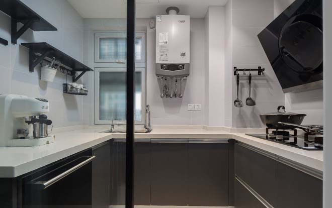 下廚也是緩解工作壓力的一大樂(lè)事,U形臺(tái)面十分符合日常烹飪習(xí)慣,夫婦兩同時(shí)洗菜、切菜、炒菜,也能行動(dòng)自如。用擱板代替常規(guī)吊柜,讓空間更開(kāi)闊輕盈,拿取也更加方便。合理安裝吊桿,也讓各類調(diào)味品、鍋鏟、勺子有了容身之所。