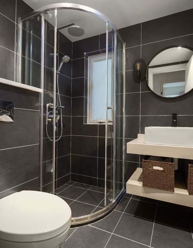 洗手間利用圓弧形淋浴房,進(jìn)行干濕分離,保持空間的清爽潔凈。開(kāi)放式的浴室柜、輕盈的梳妝鏡,讓小空間更開(kāi)闊。入墻式馬桶沒(méi)有衛(wèi)生死角,方便日常打理。