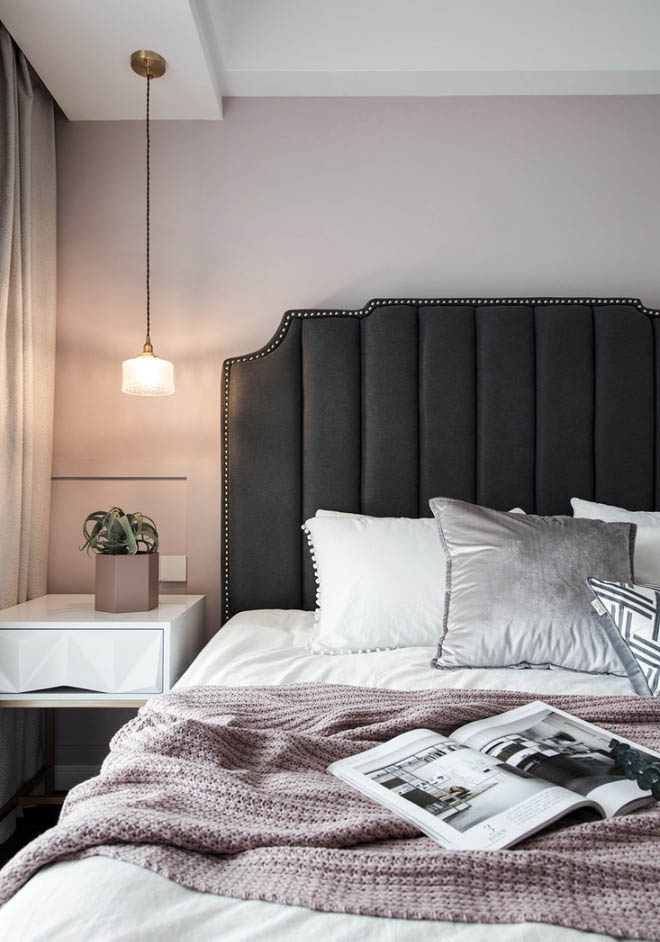 ▲當身體擁抱床,是一天中最柔軟的時刻。粉色給人浪漫、柔軟的感覺,次臥的輕柔旋律與窗外的自然氣息相融合,氳氤的空間,頗具現(xiàn)代韻味的浪漫主義情懷。