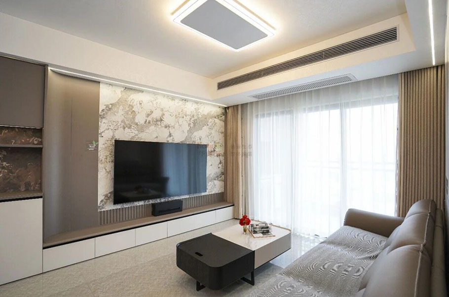 4、電視機(jī)背后墻面預(yù)埋50管徑,便于隱藏電源線、音頻線、網(wǎng)線等接入,不影響美觀