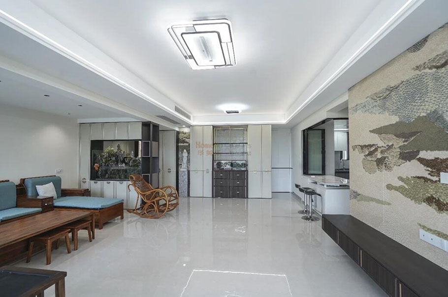 餐桌一側(cè)是嵌入式儲物柜,柜體分為開放式和封閉式兩種,提供充足的收納空間。柜內(nèi)可以放置餐具、酒類等物品,保持了餐廳的整潔。儲物柜增加背景燈帶不僅起到裝飾作用,還讓藏品得到更好的展示狀態(tài),提升格調(diào)。
