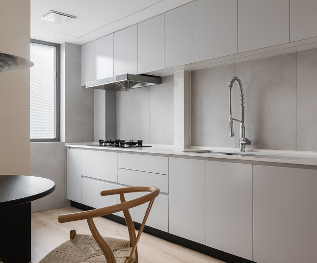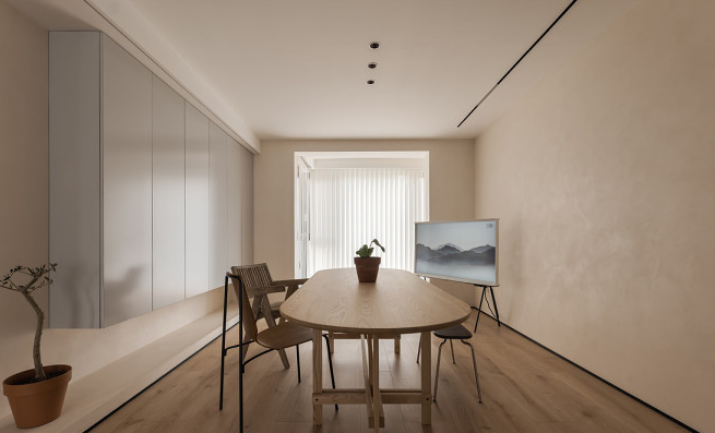 設(shè)計(jì)師從大地色系中汲取配色靈感,佐以粗糲低調(diào)的藝術(shù)漆肌理,用平直的線條造型凸顯空間的「侘寂」風(fēng)范,賦予家以獨(dú)特的原始淳樸東方韻味。