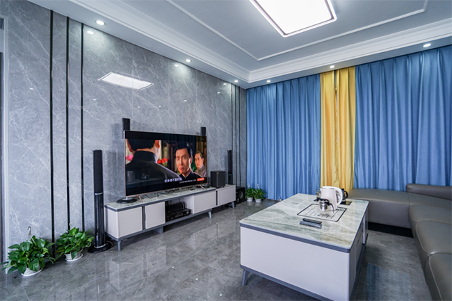 多功能巖板茶幾具備電動升降功能與一定收納功能,對于日常愛好泡茶的業(yè)主夫婦來說,實用性很強,用于待客也是十分的方便。